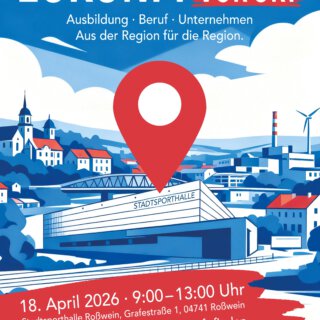 Erstmals findet am Samstag, den 18.04.2026, die Ausbildungs- und Karrieremesse ZUKUNFT VOR ORT in Roßwein statt. In der Stadtsporthalle Roßwein könnt Ihr uns und viele andere Unternehmen aus der Region zwischen 09:00 und 13:00 Uhr an unseren Ständen besuchen und mit Fragen löchern. Wir freuen uns auf Euch!
